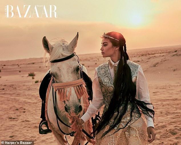 SHANINA SHAIK POSES STUNNING DESERT SHOOT HARPERS BAZAAR ARABIA