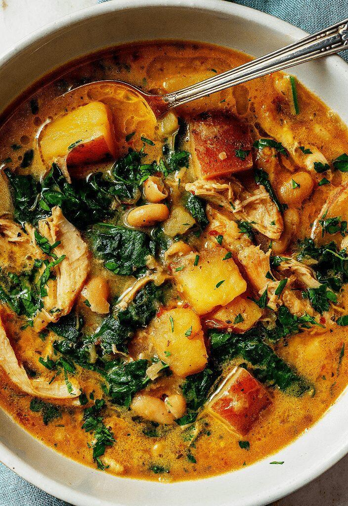 This hearty chicken soup with white beans and kale is a perfect weeknight meal. It’s a one-pot recipe that’s easy to prepare, requiring minimal effort at the stove, and it can also be made in a crockpot for added convenience!