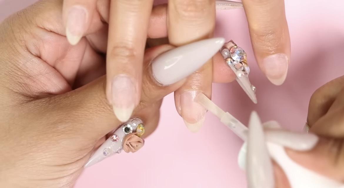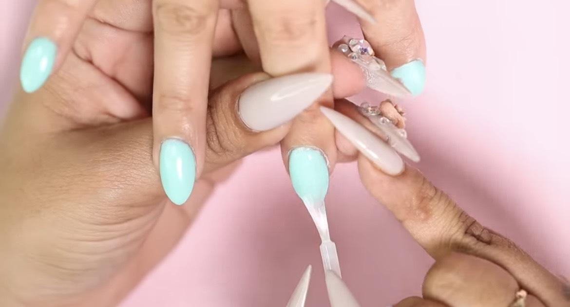 To lengthen your nails, select tips that cover no more than one-third of your nail bed. Ensure each tip spans the entire width of your nail, from groove to groove, without extending onto your skin. Apply tip resin to the wells of the tips. Gently but firmly hold each tip to the nail at a 45-degree angle for twenty seconds. In case you can’t find a nail tip of the right size, use a nail file to make minor adjustments for a secure fit. Pinch the sides of the tips briefly to adhere them to the curvature of your nail edges. Be cautious not to get resin on your fingers.