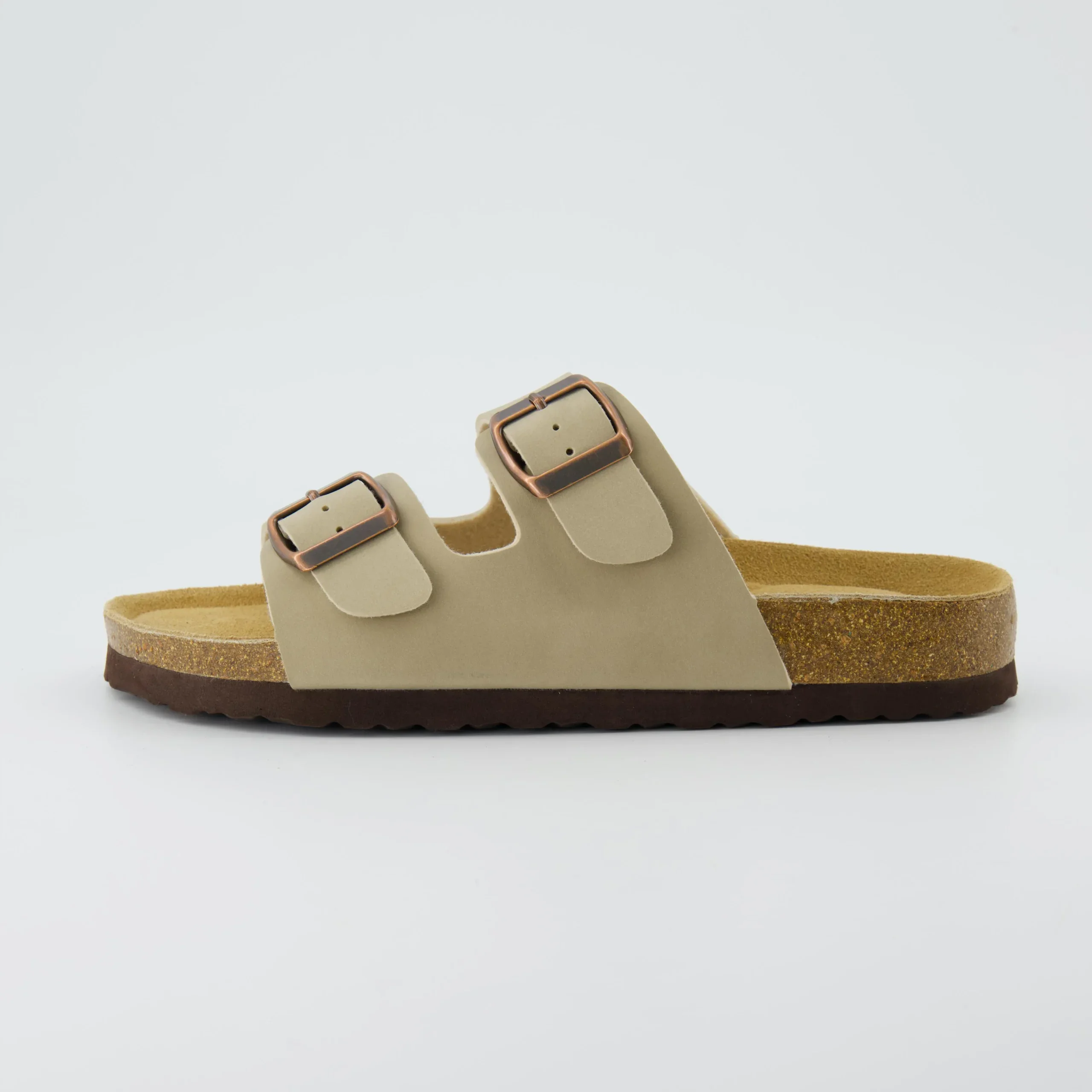 We really like these slides because they’re like a cheaper version of Birkenstocks but still give you the same comfort, style, and performance. However, the buckles might look a bit cheap. They have rugged soles made of EVA with good grip, so you won’t slip on wet or dry surfaces. Even though they might look like they’d get worn out easily, they still looked new after testing. You can get them in white, brown, or black, and they go well with different outfits. If you’re not sure about the size, it’s better to go up a size. They come in sizes 5 to 10 and are made of leather, suede, cork, and EVA.
