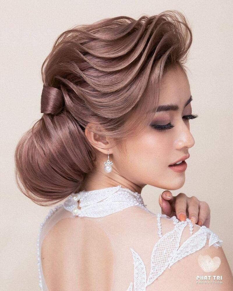 To highlight your facial features, décolletage, or showcase statement jewelry, a slicked-back bun is an excellent choice. Pulling your hair into a sleek chignon creates a look that is both modern and timeless, effortlessly complementing any wedding style or venue.