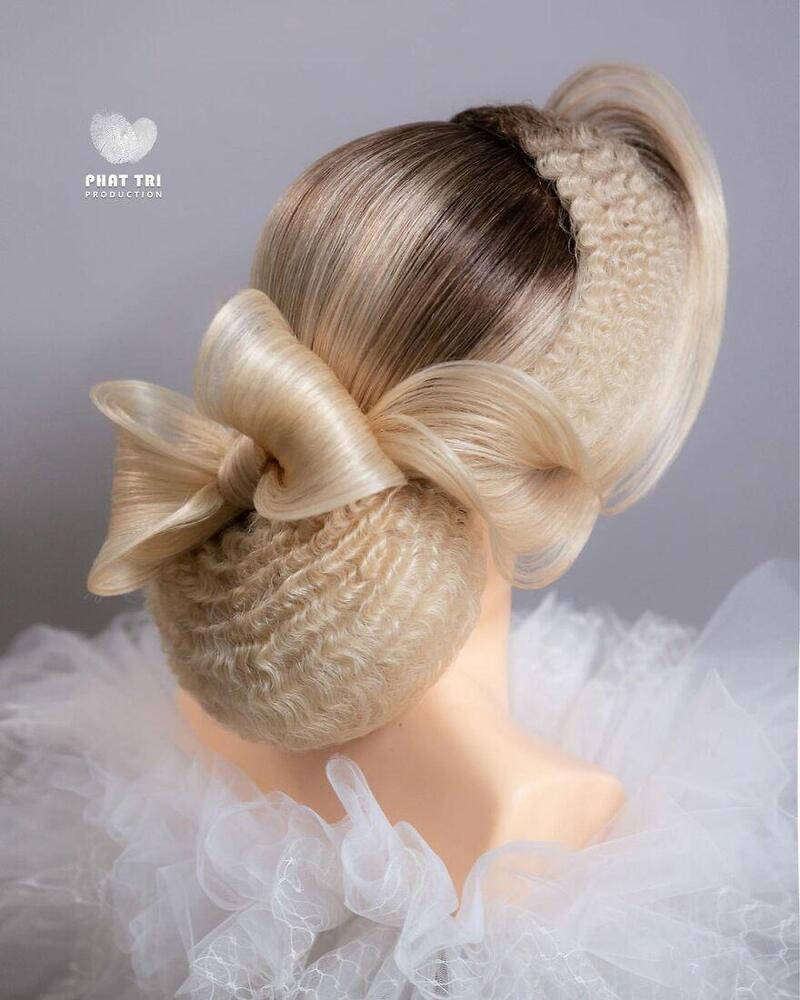 Is colorful, vibrant hair your style? Embrace a bold pop of color as you get ready for your nuptials! This bride’s rosy strands for her Monet-inspired garden wedding exuded pure romance (after all, pink is a classic symbol of love!). The hues perfectly complemented her multi-colored gown adorned with lively flower-and-butterfly appliqués.