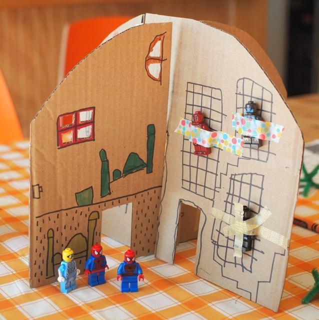 Looking for a fun, screen-free activity for the boys? Try creating a cardboard fort or house for their favorite toys, like Legos or action figures. Get creative by adding unique features such as a cardboard slide, garage, or even a box car to enhance the play experience.