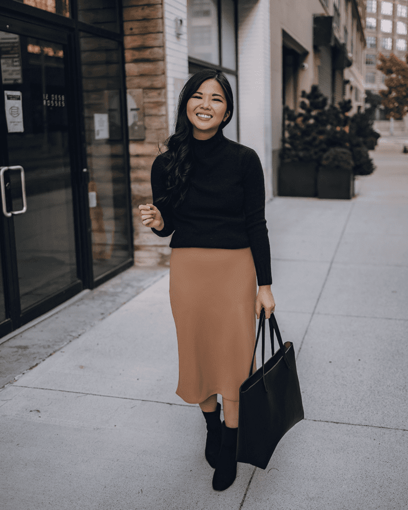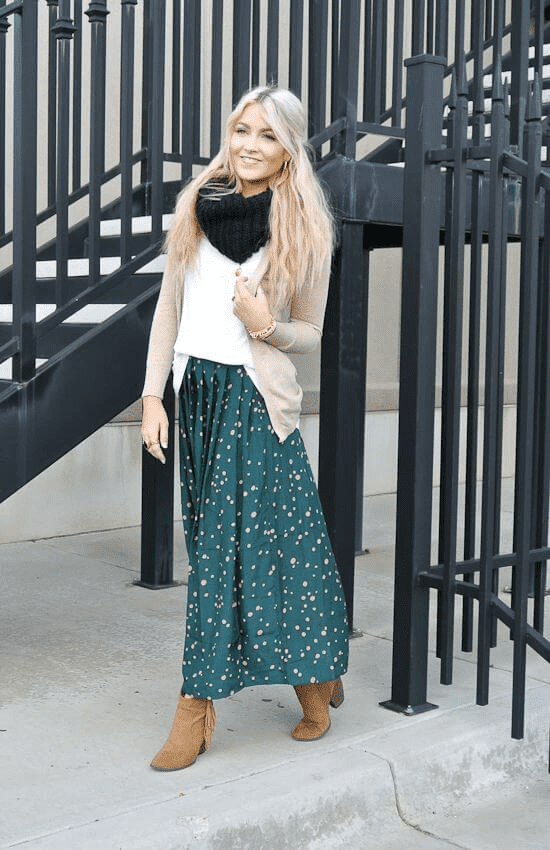 This outfit combination is a perfect blend of casual comfort and polished style. The cotton denim maxi skirt offers a relaxed silhouette that’s perfect for hot summer days. The soft cotton fabric ensures breathability and keeps you cool, while the denim adds a touch of timeless coolness. To balance the casual vibe of the skirt, pair it with a high-neck bodysuit. This creates a sleek and sophisticated base layer that elevates the entire outfit. Choose a bodysuit in a solid color like black, white, or a rich jewel tone to complement the denim.