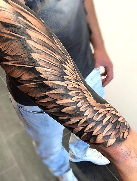 Angel wing tattoos symbolize freedom, representing a free spirit or liberation from challenging times. Some individuals choose these tattoos as a tribute to a loved one who has passed away. The forearm provides an excellent canvas for a wing tattoo, offering enough space to showcase the full shape and intricate details of the feathers. Typically, black ink is used to enhance depth and create movement within the feathers.