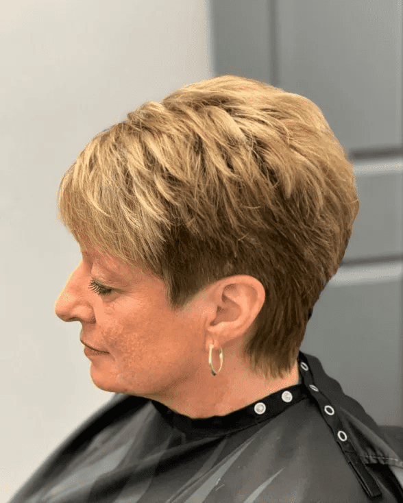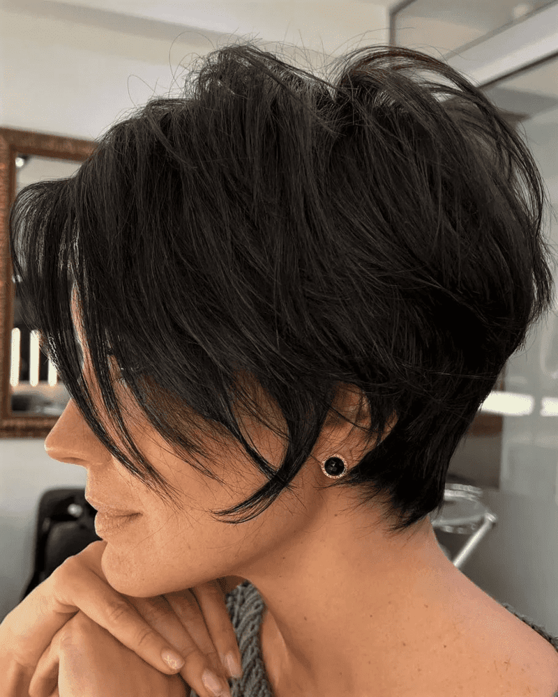 A tight pixie with long top layers is a delightful choice. It strikes the perfect balance between youthful and mature, offering a chic and elegant appearance.
