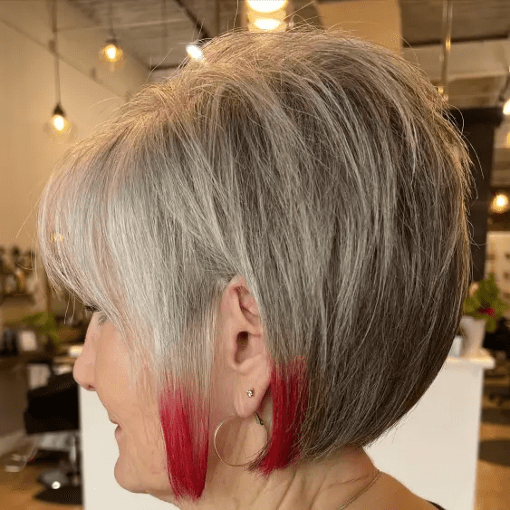 Embrace your natural gray hair and elevate it with a silver balayage bob! While this style has been a hit with younger generations, there’s no reason you can’t be a standout. It’s fluffy, modern, and complements any aesthetic you’re drawn to.