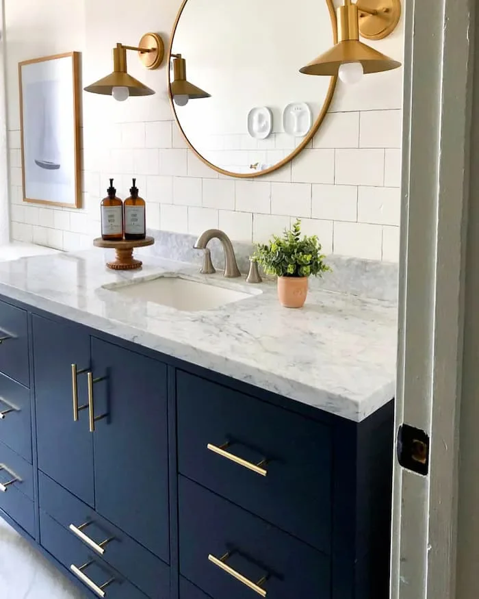 In this article, I’ll share eight budget-friendly ideas to help you achieve the spa-like navy blue bathroom of your dreams. From enhancing your lighting to adding greenery for a touch of nature, I’ve got all the inspiration you need. Whether it’s a powder room, guest bath, small bathroom, or master bath, these tips will help you turn it into a luxurious oasis—without breaking the bank. Let’s get started!