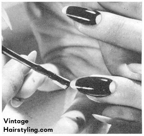 Nail polish in the ’40s was almost always red, and matching your nails to your lipstick was the norm. Other shades like pink, coral, rose, and burgundy were also popular. A clear topcoat was always used for durability, and some women embraced the “half-moon” style, where the base of the nail (around the cuticle) was left unpainted.