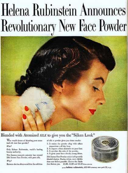 Powders should match your natural skin tone as much as possible. Light shades kept a woman looking fresh and youthful, while a slightly bronzed shade added a sun kissed glow, popular with movie stars. Almost all makeup lines carried a sun kissed color or two.