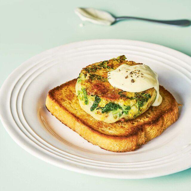 A British favorite that mixes mashed potatoes and cabbage into patties, fried to golden perfection, and topped with bacon and eggs.