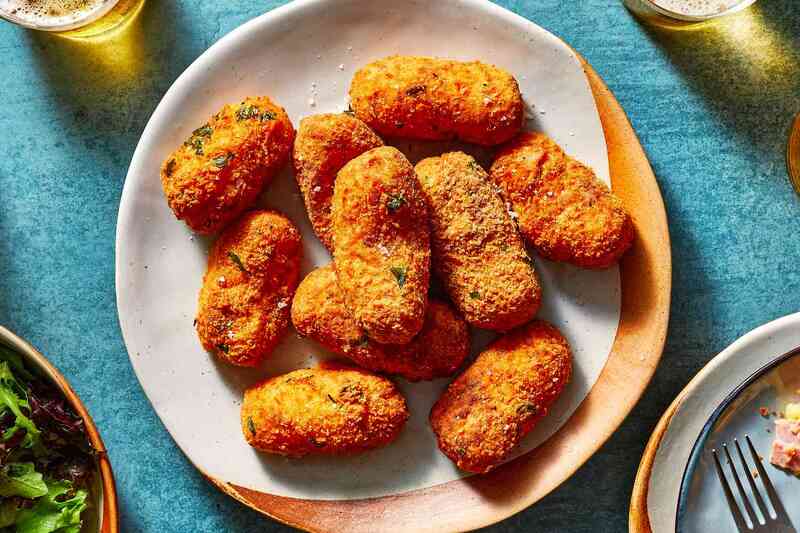 Crispy fried balls of mashed potatoes, ham, and cheese—perfect as a snack or appetizer.