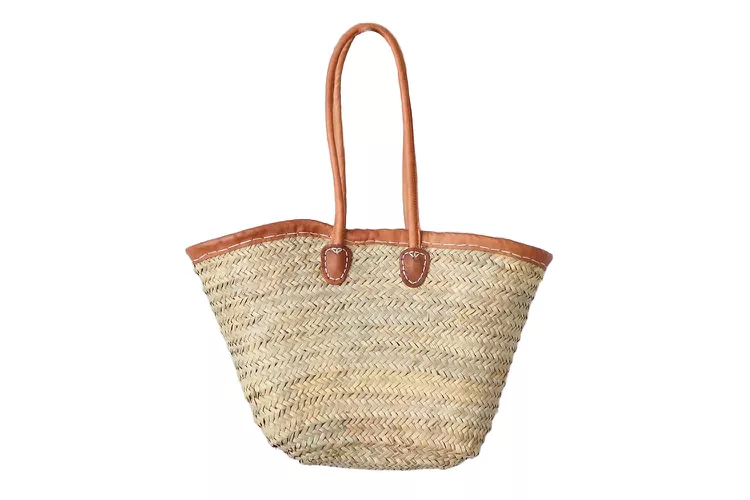 A good straw bag should look classic and last a long time, even with regular use. Stylist Brittany Diego says we should pay attention to the stitching and straps when choosing one. She recommends picking a bag with high-quality materials for a stylish and durable design. This market tote from Terrain meets all these criteria. It’s made from eco-friendly Moroccan date palm leaves and has strong leather handles held together with sturdy white stitching. Plus, it’s easy to clean – just spot-treat small areas and let it dry in the sun. Just remember that palm leaves can lose their shape if they get wet.