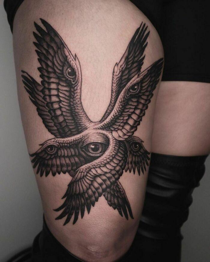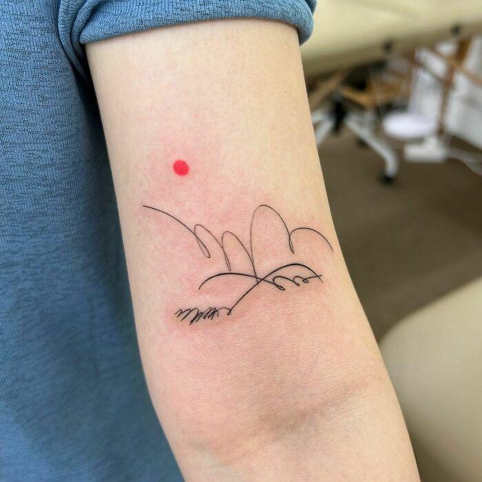 This minimalist tattoo is both subtle and meaningful. It depicts the iwa bird, which is linked to the Goddess Kaiona in Hawaiian mythology. The merciful goddess sent the iwa bird to guide those lost in the forests. This tattoo can symbolize guidance and a connection to higher powers.
