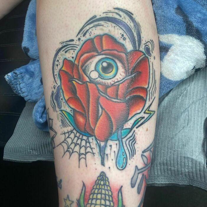 If you’ve ever visited Hawaii, you’re likely familiar with the abundance of hibiscus flowers found throughout the state. They come in a variety of colors, including red, pink, yellow, and purple. This tattoo features hibiscus flowers in a reddish-pink shade with vibrant green leaves, symbolizing beauty and joy.