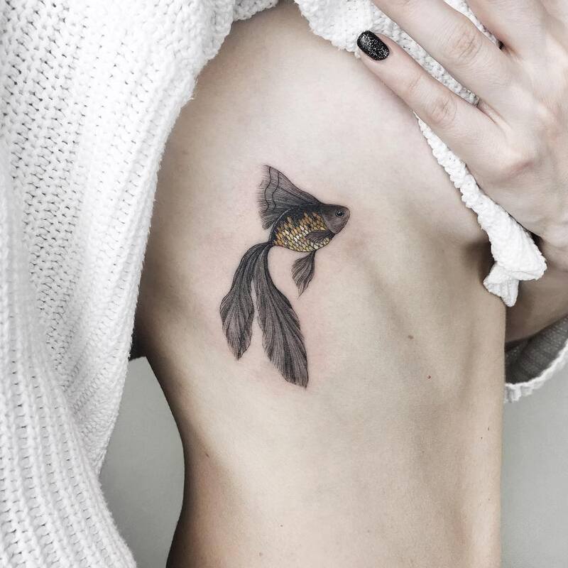 There are no strict rules when choosing a motif for rib tattoos, but if you want your tattoo to feel realistic and lively, consider opting for moving animals like birds or fish. Their fluid motion and natural elegance can bring energy and life to the design, making it truly stand out on your ribcage.