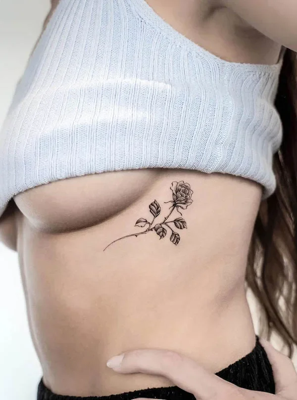 SMALL BLACK ROSE RIB TATTOO