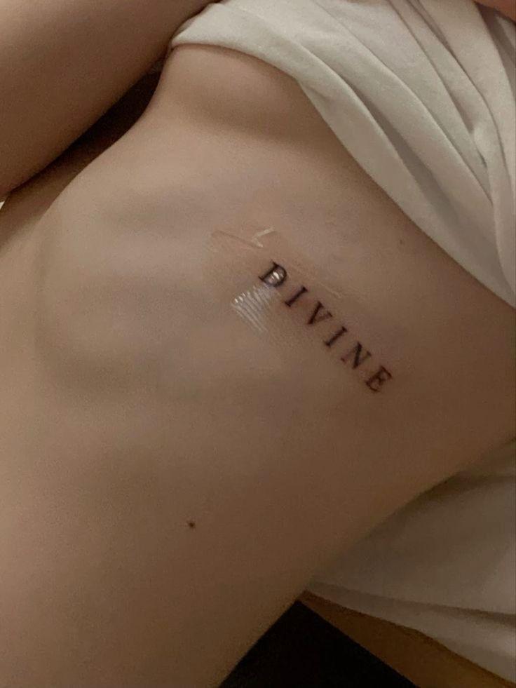 Want to keep it simple? Choose a word that represents your values and who you are. For example, the one-word tattoo “divine” speaks volumes about the wearer’s personality and how she sees herself. It’s not just personal but also empowering, serving as a constant reminder of self-worth and strength.
