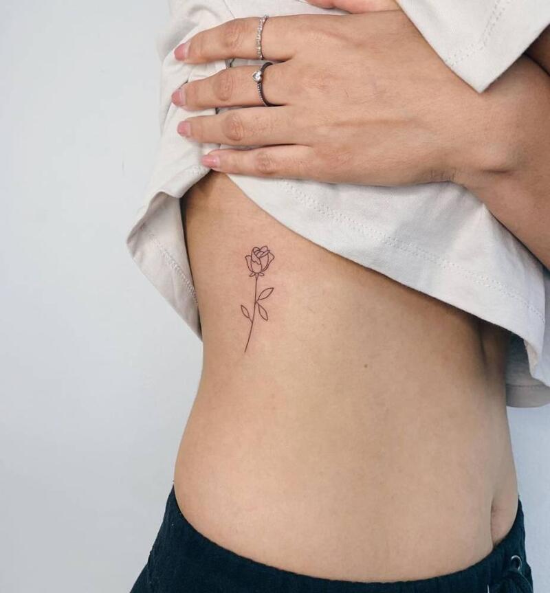 Outline tattoos are perfect for those who appreciate simplicity over complexity. A small flower rib tattoo like this may not be bold or flashy, but it’s the understated elegance that makes it timeless. Its clean lines and minimalist design ensure it remains a classic, offering subtle beauty that lasts.