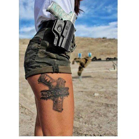 Best for: This unique gun tattoo design is ideal for women who want to make a bold statement by showcasing their favorite weapons on their bodies.