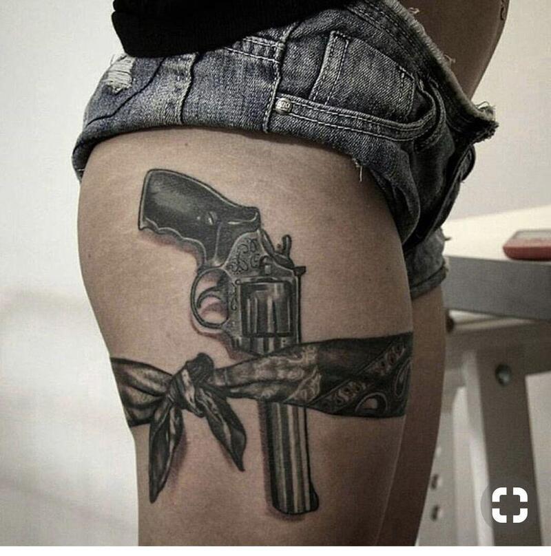 Best for: This is a stylish gun tattoo design for confident women who aren’t afraid to flaunt their ink.
