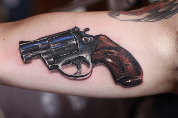 Do you remember those childhood days when we used our fingers to form toy guns? You can now relive those nostalgic memories by getting a small gun tattoo etched on your fingers! This creative concept is one of the new trends in gun tattoos and looks absolutely amazing. It’s a versatile design that appeals to both men and women.