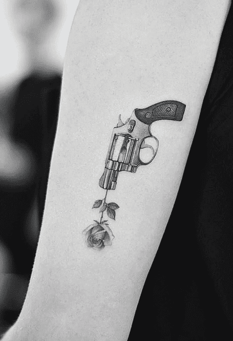 Best for: This simple gun tattoo design is perfect for women who want to convey an artistic and feminine flair.