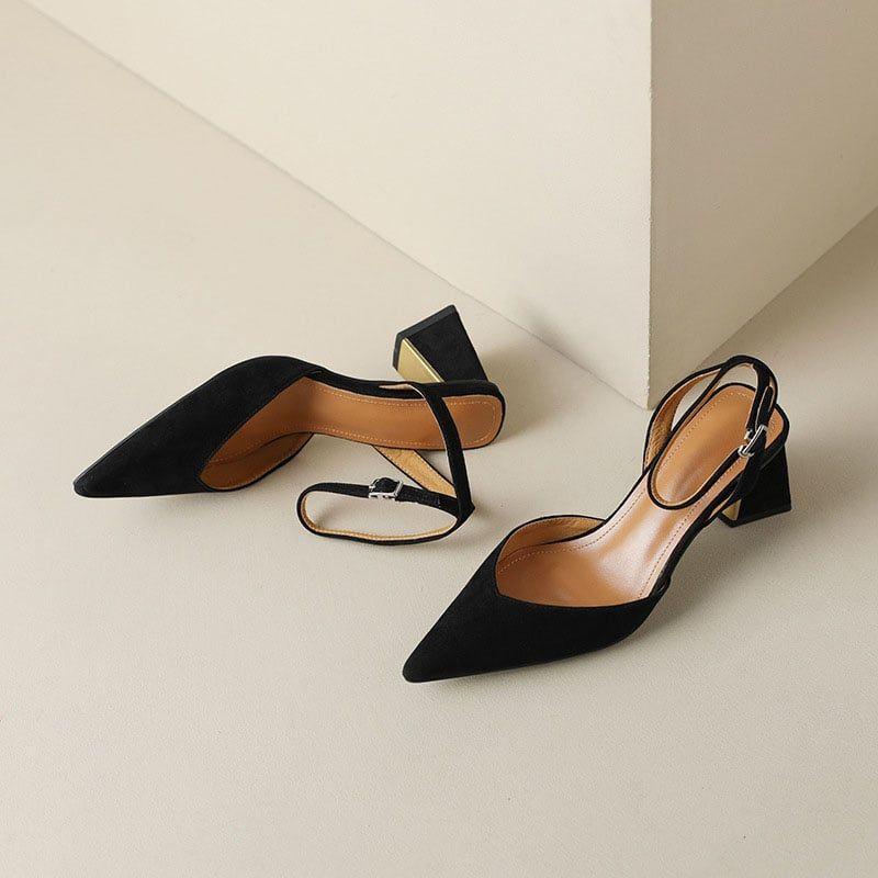 For a chic and sophisticated look, match your black pants with strappy-heeled sandals. These sandals will elongate your legs and add height while ensuring you maintain the comfort needed throughout the day.