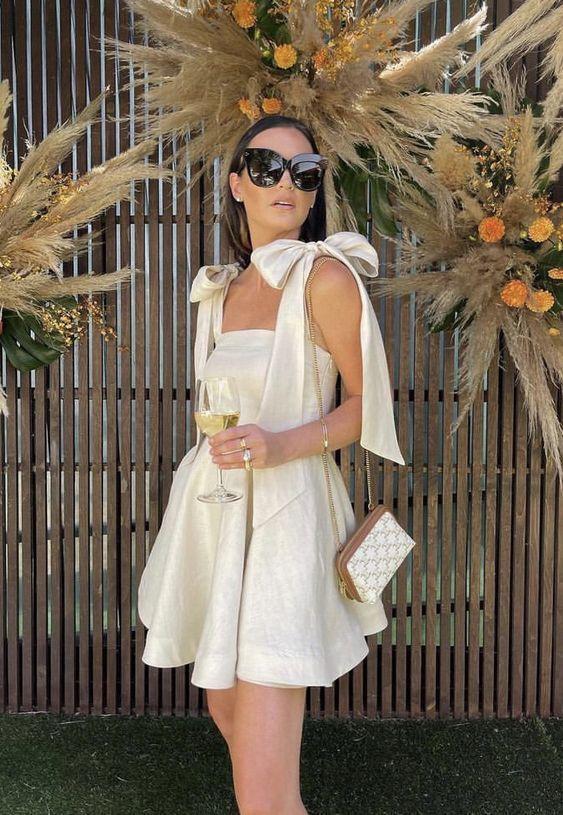 There are so many elements of this cute little black dress that we absolutely adore. The ruffled waist detail adds a charming touch, while the crisscross skirt creates a slimming effect on your legs. Minimalist heels and a black handbag complement the dress perfectly, enhancing its overall appeal. As we’ve seen, black is increasingly embraced as a wedding dress color, providing a stunning contrast to traditional white weddings and exuding grace and elegance.