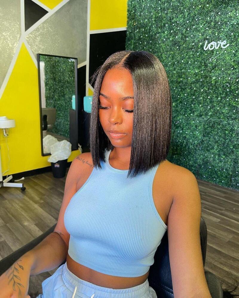 The sleek straight bob is a timeless and sophisticated hairstyle that radiates elegance and confidence. Typically cut to chin length or slightly longer, this bob is styled straight to highlight its clean, sharp lines.