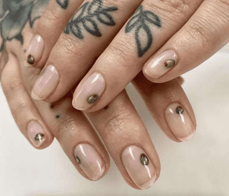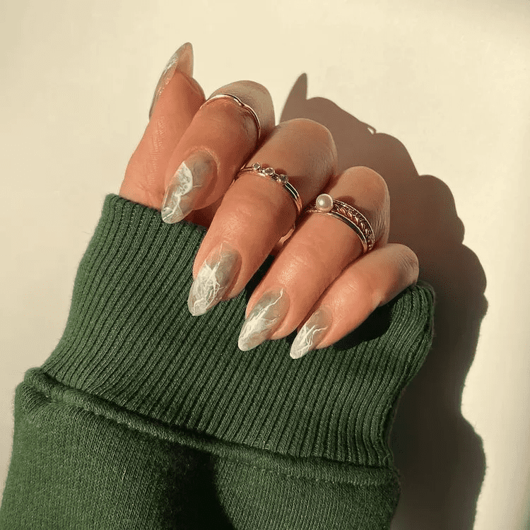 Love the luxurious look of marble? Olive marble nails capture that elegance with a twist! Imagine swirls of creamy white and different shades of olive green blended together on your nails, creating a one-of-a-kind design. The great thing about this style is that no two nails will ever look exactly alike, making your manicure unique and eye-catching. Olive marble nails dress up any outfit and are perfect for those who appreciate a touch of sophistication with a modern edge.