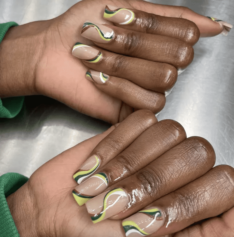 GROOVY SWIRLS OLIVE GREEN NAILS