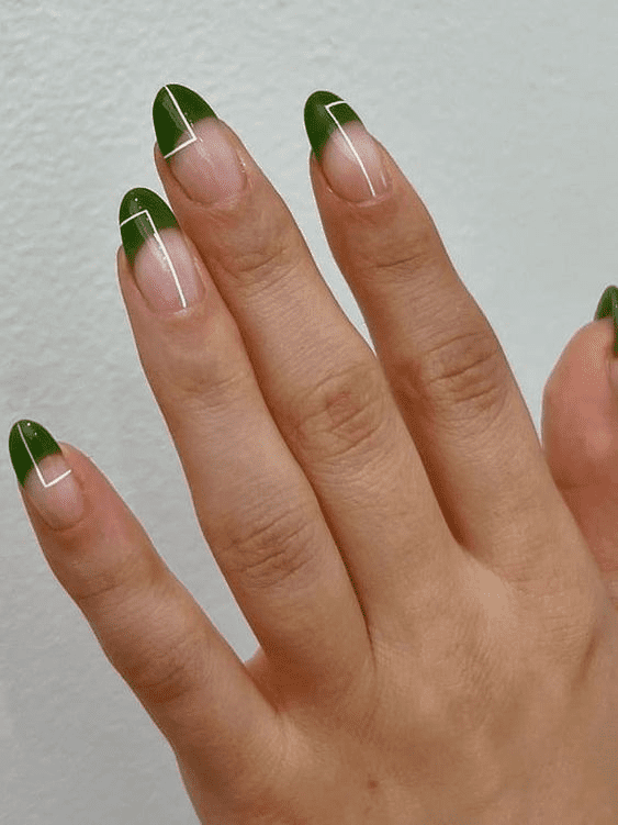 GEOMETRIC DETAILS OLIVE GREEN NAILS