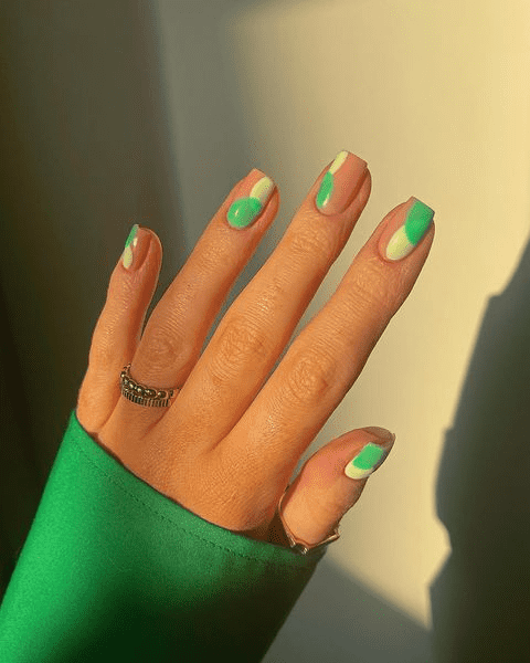 COLOR-BLOCKED TIPS GREEN NAILS