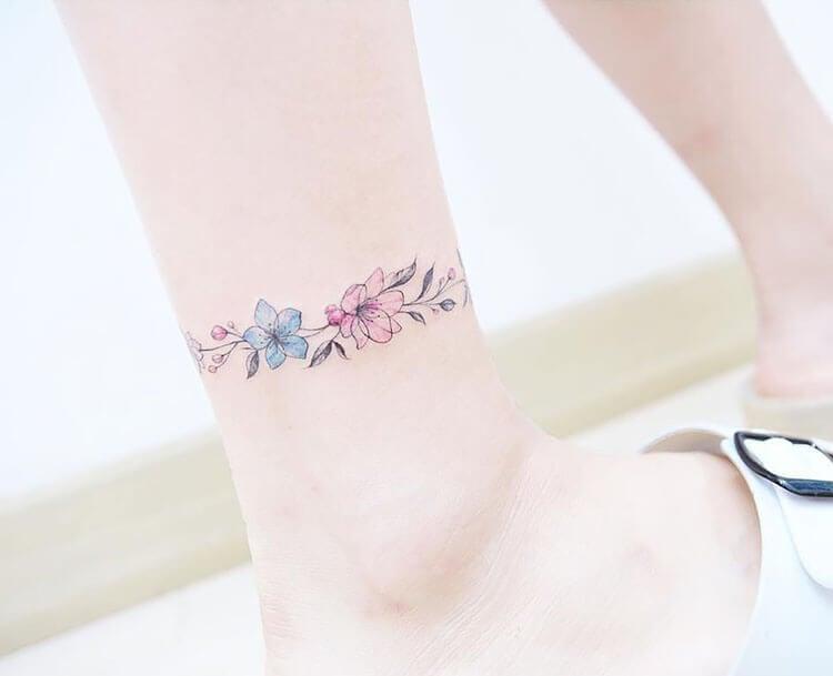 If you’re looking to capture the beauty of cherry blossoms, this design is perfect. With its delicate petals and soft hues, it’s like carrying a piece of Japan’s iconic Sakura season on your skin. The gentle flow of cherry blossoms around your ankle adds a serene and timeless elegance, bringing the charm of spring wherever you go.