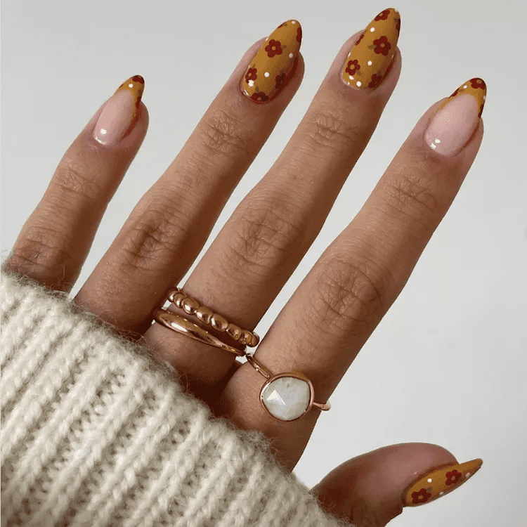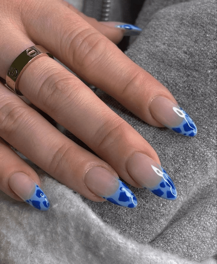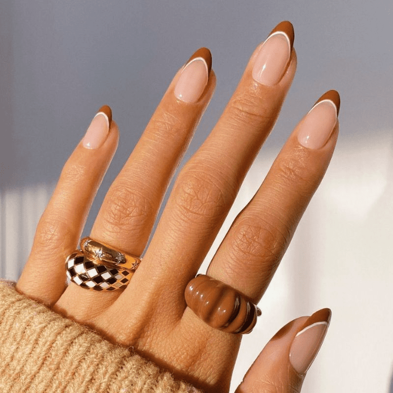 Embrace your inner wild side with a fun and trendy twist on the classic French manicure – brown cowprint tips! This playful design combines the timeless elegance of French tips with a touch of whimsy and personality. Imagine crisp white French tips accented with tiny brown cow spots, meticulously hand-painted or created using nail art stickers. You can customize the look to your preference. Keep it subtle with a few sparse spots or go all out with a full-on cowprint pattern on each tip. Brown cowprint French nails on short nails are surprisingly versatile. The playful design adds a touch of fun to casual outfits while the classic French base maintains a touch of sophistication. It’s a perfect choice for those who want to express their unique style and stand out from the crowd.
