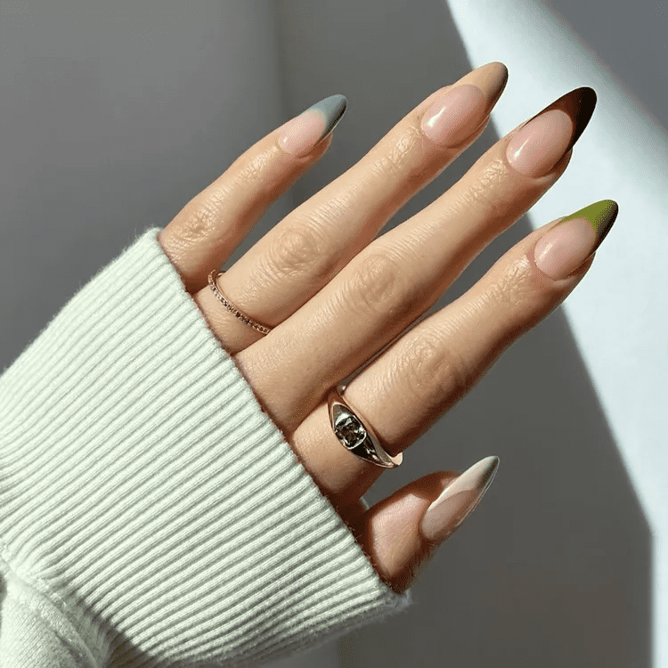 The beauty of alternating French nails lies in its versatility. Keep it simple with a subtle color change on each finger, or go all out with a wild mix of patterns and finishes. This playful approach allows you to express your individuality and have fun with your manicure. It’s perfect for those who crave a unique look that’s guaranteed to spark conversation.