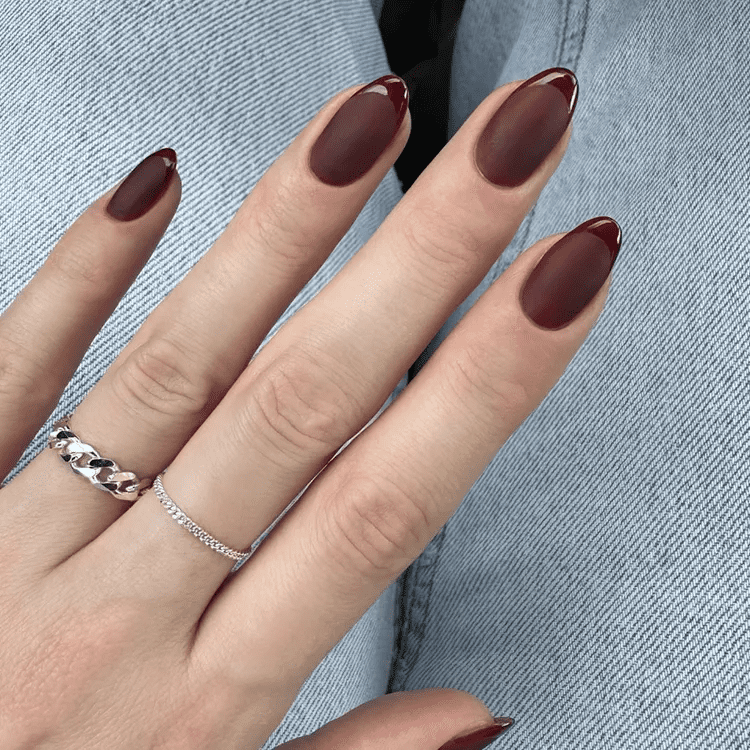 Channel your inner fashionista with burgundy and black French tips! At first glance, it looks similar to dark red nail but it is a bit different. It’s black at the tip of the nail combined with the rest of the red. This sophisticated color combination offers a unique twist on the classic French manicure, perfect for those who crave a bold yet elegant look. Imagine sharp lines of rich, luxurious burgundy wrapping around the tips of your nails, contrasting beautifully with a touch of sleek black. You can play with the proportions, choosing a wider range of burgundy accented with a thin black line for a dramatic effect, or a thinner, more balanced combination for a sense of sophisticated luxury. Short burgundy and black French nails are very versatile. They complement both formal outfits for a modern touch or elevate everyday outfits with a touch of understated sophistication. Whatever your preference, this color combination is sure to impress and showcase your unique style.