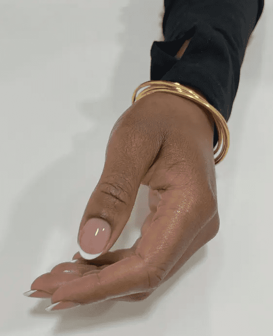 Sheer golden French nails on short cuts are incredibly versatile. They complement both casual and formal attire, adding a touch of understated luxury to everyday looks and a hint of shimmer to special occasions. It’s a perfect choice for those who crave a touch of glamour without overwhelming boldness.