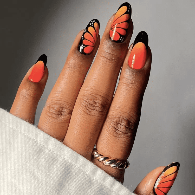 ORANGE AND PURPLE FRENCH NAILS