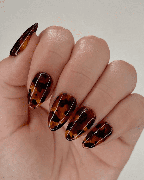 Fall wedding nails add a fun and funky touch to your look while remaining elegant and classic. They complement any bridal dress or outfit, making them a versatile choice for your big day. One of the best things about fall Pinterest nails is their adaptability. You can use darker shades to match the season and achieve the look at home with just basic polish and a bit of patience, without needing special supplies or tools.
