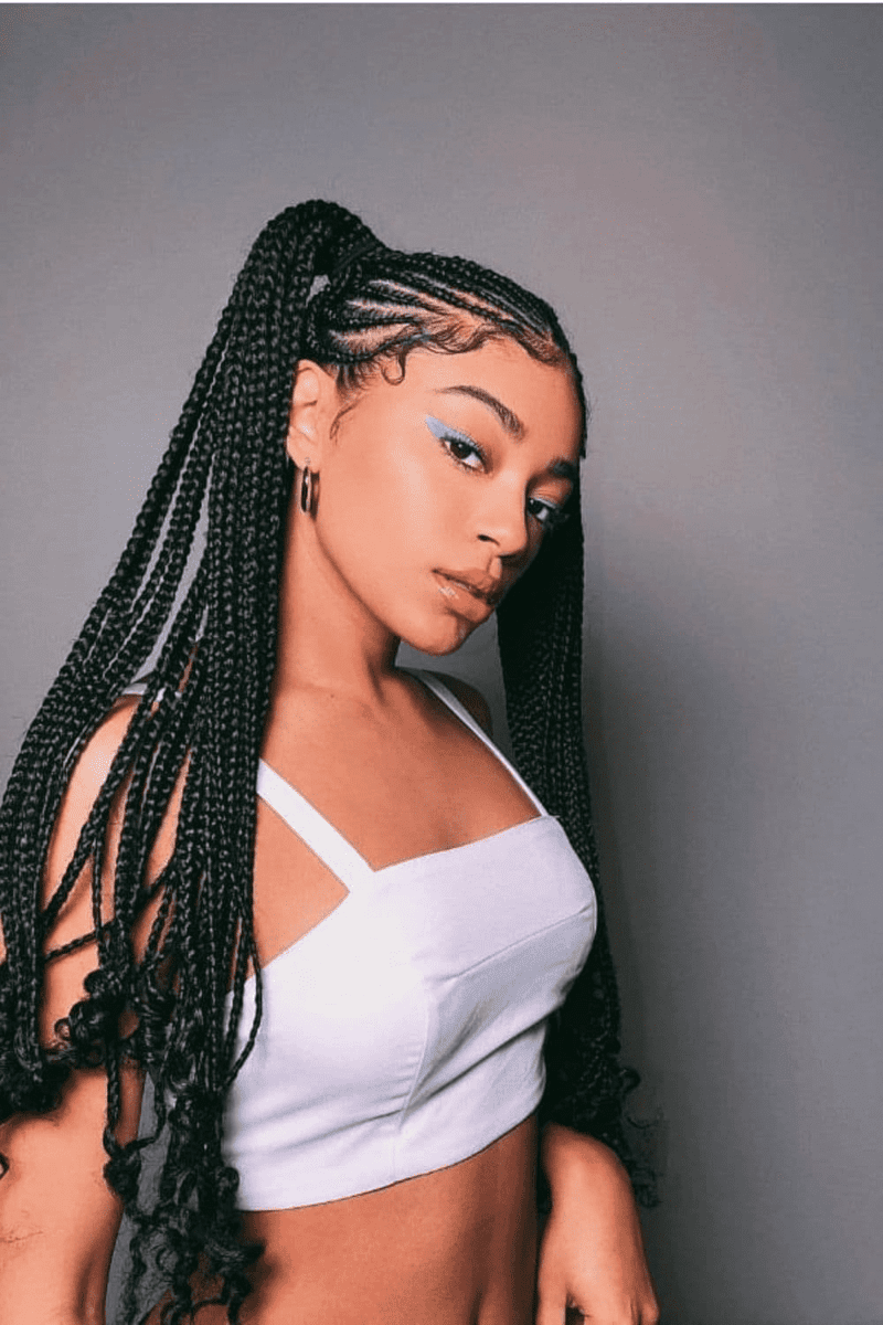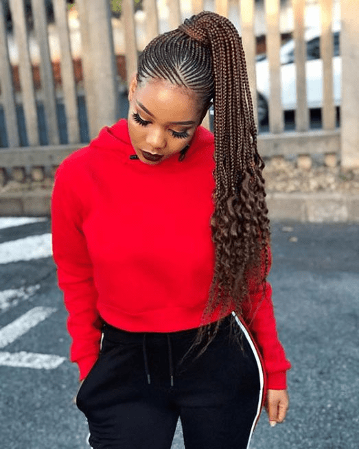 Cornrow braids with curly ends offer a stunning twist on a classic hairstyle. The curly ends add a playful touch, making the look truly stand out.