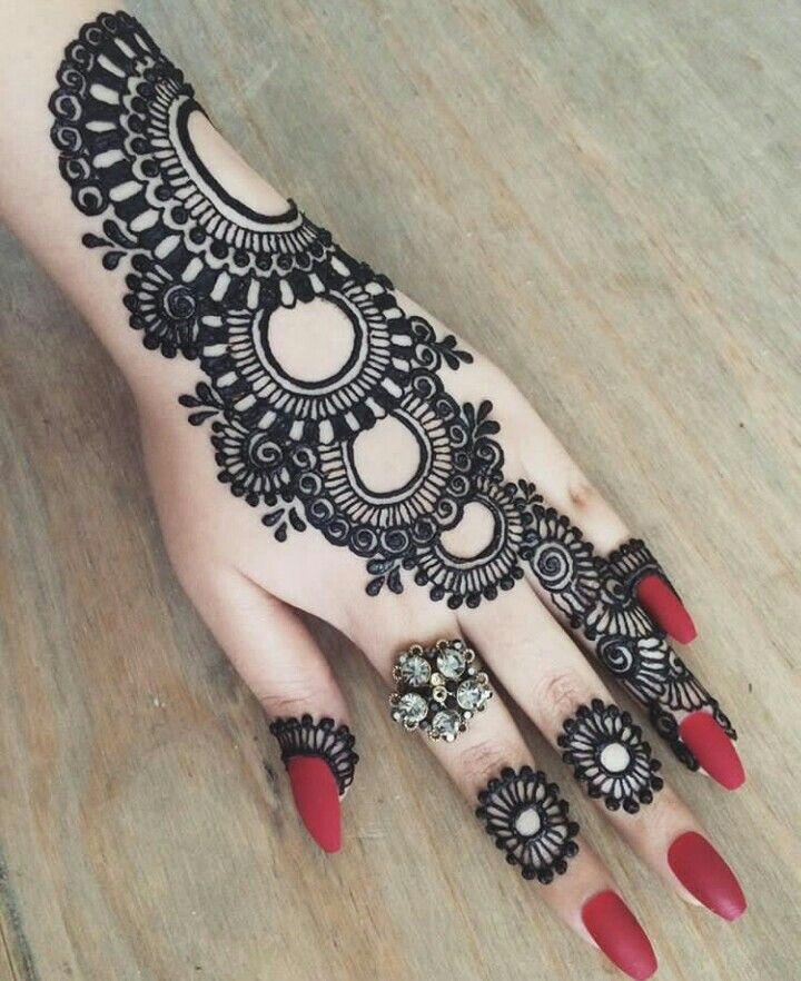 This is a timeless compilation of Mehndi designs tailored for those who appreciate minimalistic and beautiful henna patterns on their hands and legs. Experiment with this uncomplicated henna design for your traditional occasions. The captivating combination of a bold circle surrounded by leaves adds an enchanting touch. This design is suitable for both front-hand and back-hand henna art.