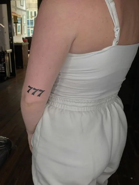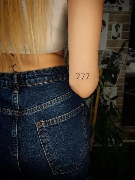 The 777 tattoo is a popular design symbolizing luck and good fortune. It’s believed to bring good luck to its wearer, as the number seven is regarded as a lucky number in many cultures. Some even think that having seven of anything can attract blessings and prosperity.
