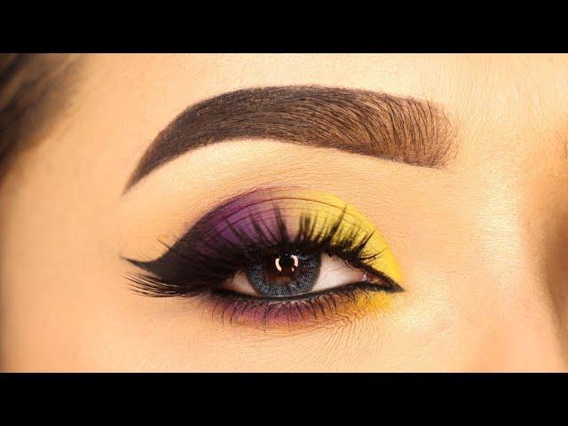 To effortlessly add vibrant hues to your eyeshadow look, try using complementary colors. In this case, yellow and purple work beautifully together!