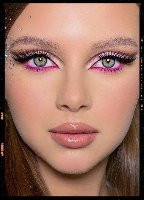 Isn’t this Barbie pink eyeshadow look just fabulous? Get creative and put a playful twist on your traditional cat eye! This makeup is all about having fun and layering different shades of pink for a gorgeous gradient effect. Remember, blending is key—the goal is for each shade to transition seamlessly into the next.