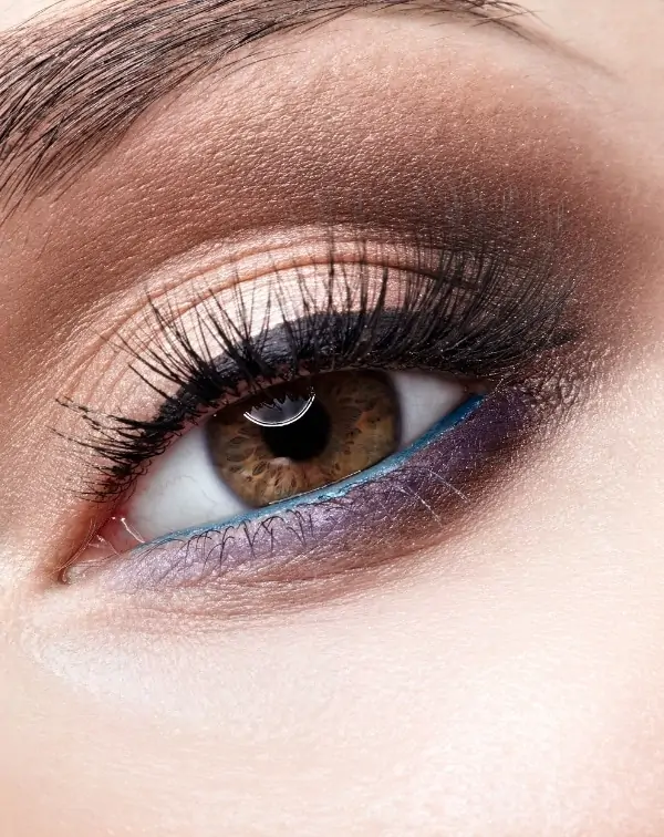 Natural eyeshadow looks are perfect for those who prefer a subtle, softer vibe. However, adding a bright blue to the waterline along with a lovely purple under the lower lash line elevates the look, giving your eyes an instant pop of creativity!
