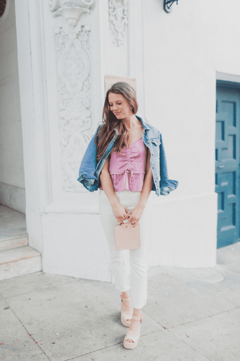 CAMISOLE, RAW HEM JEANS, ESPADRILLES, DENIM JACKET