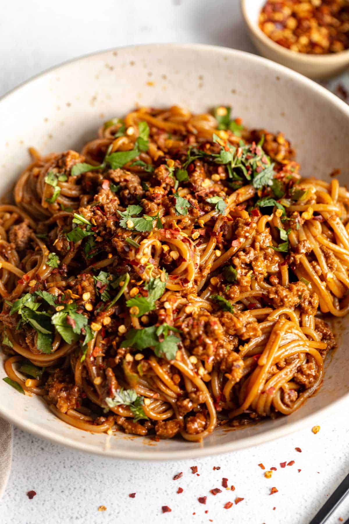 - Serve with chopped scallions, sesame seeds, cilantro, and/or extra red pepper flakes for garnish. Enjoy!