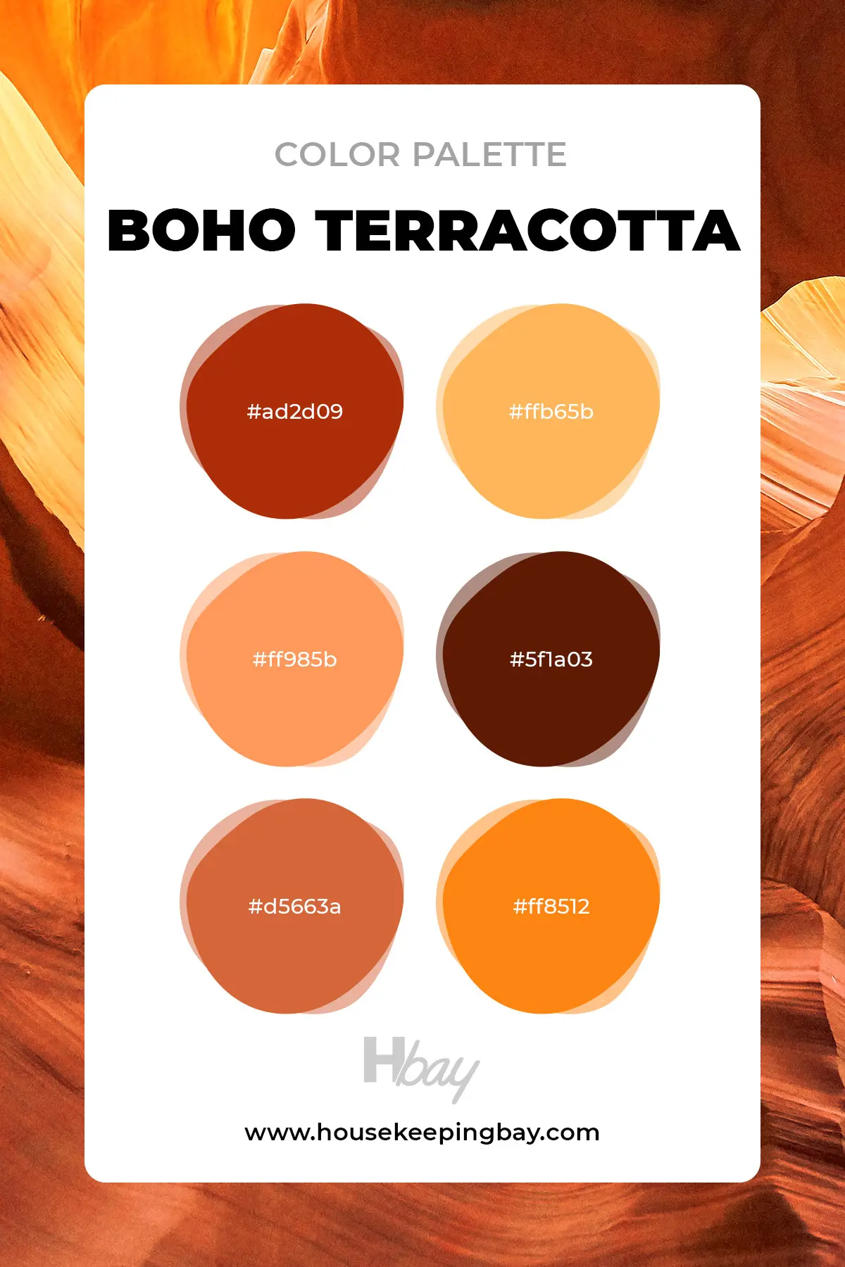 For those eager to express their passionate personality through interior design, the Boho Terracotta palette is perfect. It captures the essence of high fashion and warm sunsets with colors like: